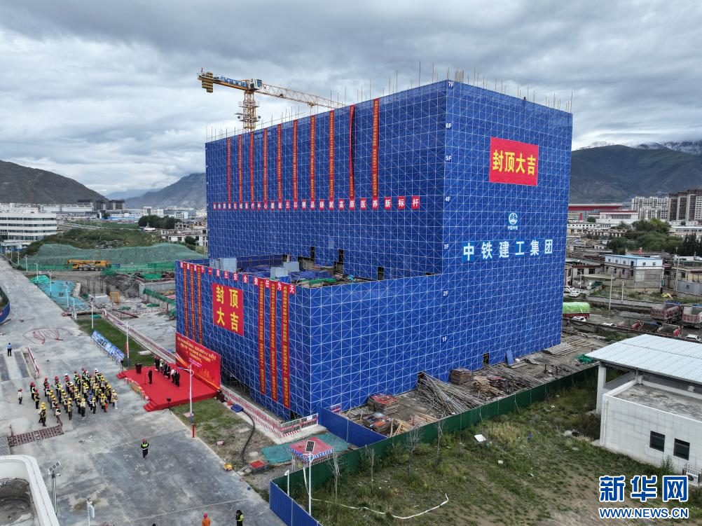 四川大學(xué)華西醫(yī)院西藏醫(yī)院(國家區(qū)域醫(yī)療中心)主體結(jié)構(gòu)封頂現(xiàn)場。(中鐵建工集團(tuán)供圖)