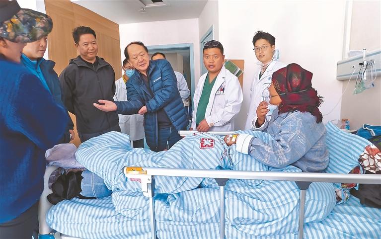 圖為南京市第一醫(yī)院關(guān)節(jié)外科專家團(tuán)隊了解患者術(shù)后康復(fù)情況。記者 格桑倫珠 攝