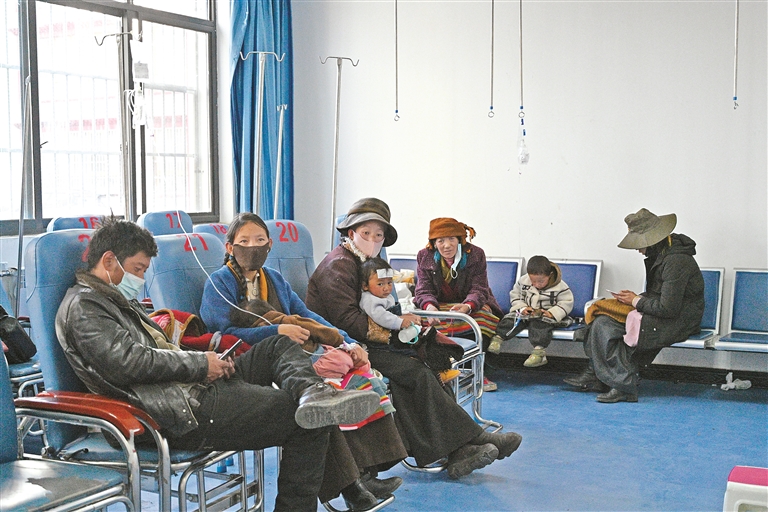 圖為桑珠孜區(qū)中心醫(yī)院內(nèi),前來看病的群眾在輸液。記者 扎西頓珠 攝