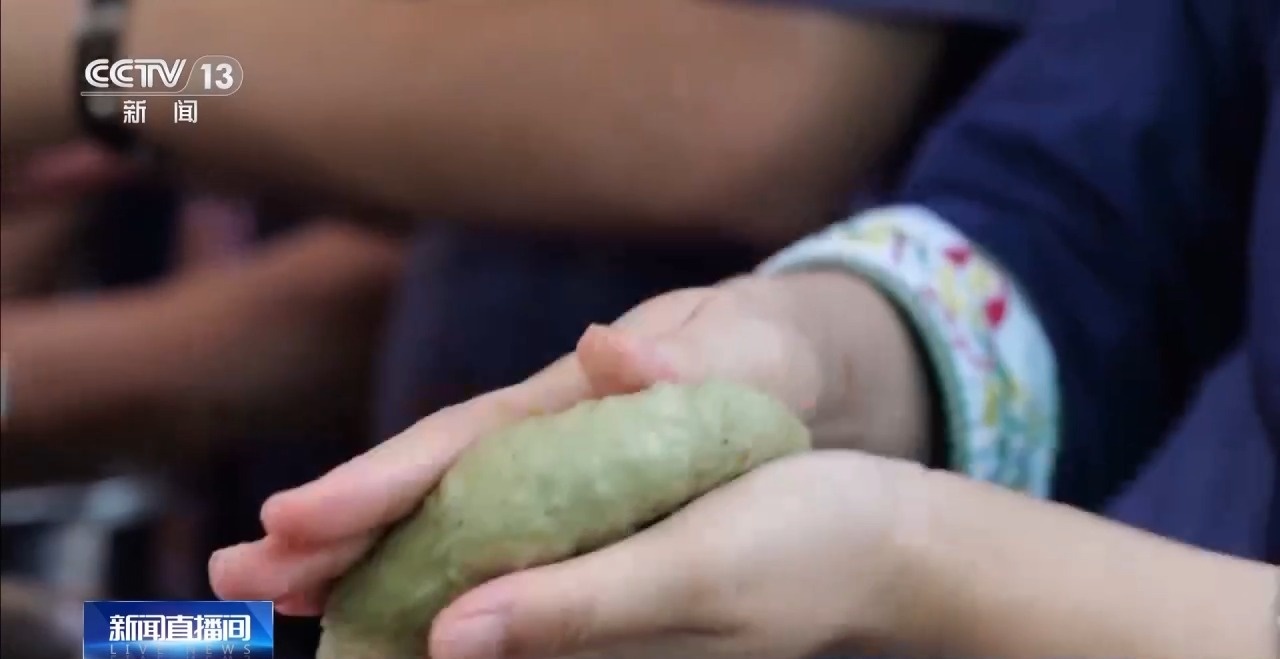 加入新鮮石斛汁液的糯米飯變得又香又糯,在一雙雙巧手里變成一張張綠色餅皮,包上豆沙餡料,外面再裹上香脆的蘇子,一個糯香四溢的石斛霜降粑就做好了。