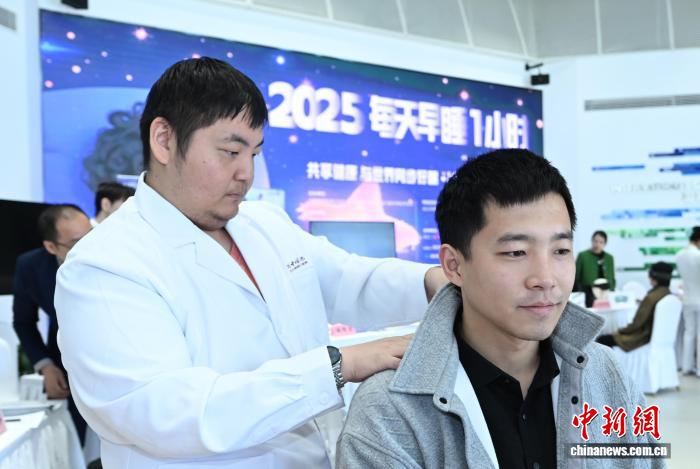 今年“世界睡眠日”當天,醫(yī)生團隊通過推拿等手段為民眾帶來中醫(yī)助眠體驗。中新社記者 王剛 攝
