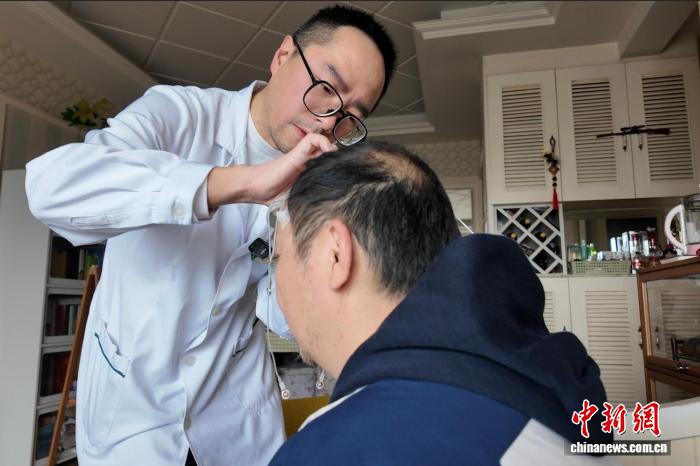 近日,成都市青羊區(qū),家庭醫(yī)生走進(jìn)市民家中,進(jìn)行睡眠質(zhì)量監(jiān)測(cè)。何美錕 攝