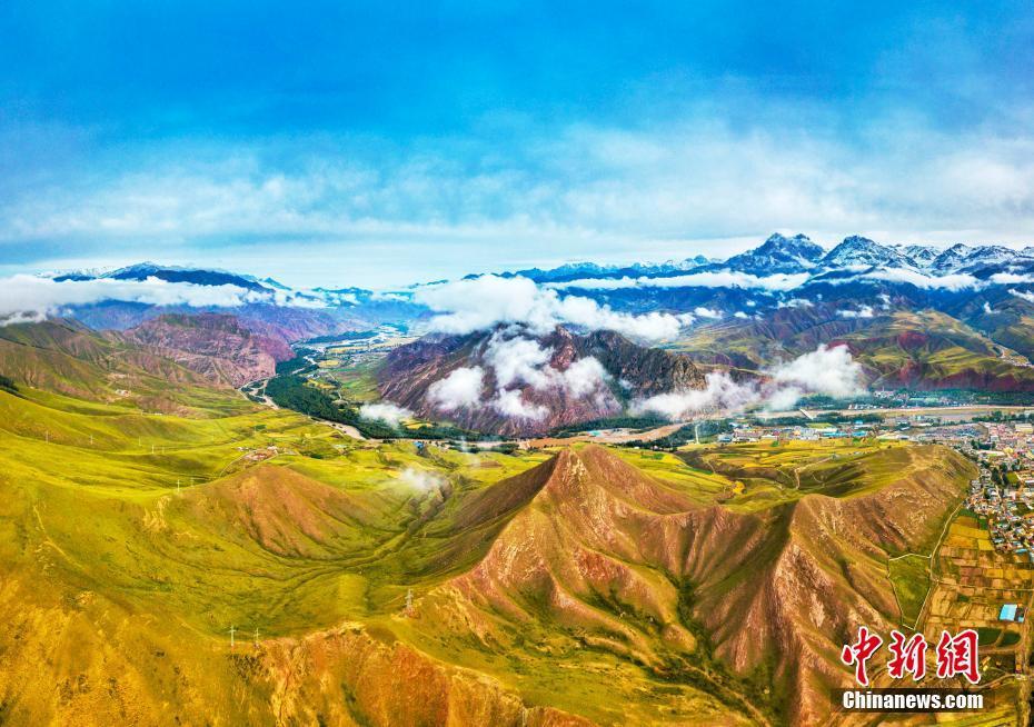 近日,航拍攝影愛好者在青海省海北藏族自治州祁連縣進(jìn)行拍攝,用航拍鏡頭記錄了中國祁連山下的最美草原。祁連縣位于青海省的東北部,北鄰古絲綢之路的首要通道甘肅河西走廊,故有青?!氨贝箝T”之稱。全縣國土面積1.4萬平方公里,共有草原1764萬畝,是青海省畜牧業(yè)基地。進(jìn)入金秋時節(jié)的祁連草原,陽光艷麗而溫暖。祁連地區(qū)其多樣性的地理地貌構(gòu)成了具有草原、雪山、林海、峽谷、冰川等獨(dú)特的原生態(tài)景觀;悠久的歷史、多樣的民族宗教文化構(gòu)成了多姿多彩的人文景觀,使祁連縣旅游資源具有原始性、神秘性、多樣性、生態(tài)性兼容的特點,有著“天境祁連”、“東方瑞士”等美譽(yù)。