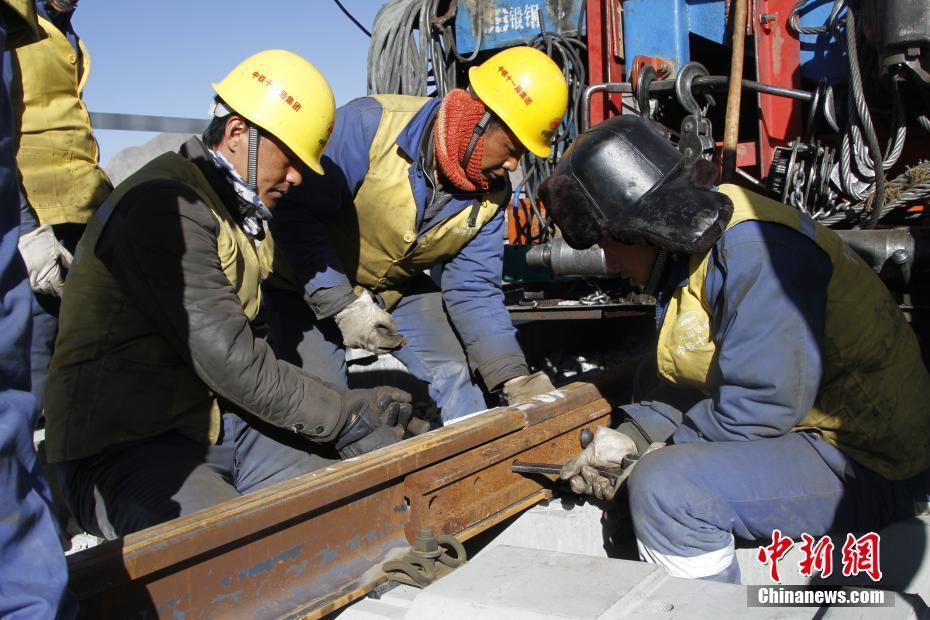 11月26日,中鐵十一局三公司拉林鐵路項(xiàng)目部鋪架二隊(duì)工人鋪設(shè)拉林鐵路首跨貢嘎雅魯藏布江特大橋鐵軌。拉林鐵路共計(jì)上跨雅魯藏布江16處,貢嘎雅魯藏布江特大橋全長(zhǎng)5727米,為拉林鐵路全線最長(zhǎng)橋梁。拉林鐵路起于西藏自治區(qū)首府拉薩,終點(diǎn)為林芝市,拉林鐵路新建正線鋪軌403.14千米,運(yùn)營(yíng)長(zhǎng)度435.48千米。圖為部分鐵路已經(jīng)鋪設(shè)完成。中新社記者 趙朗 攝