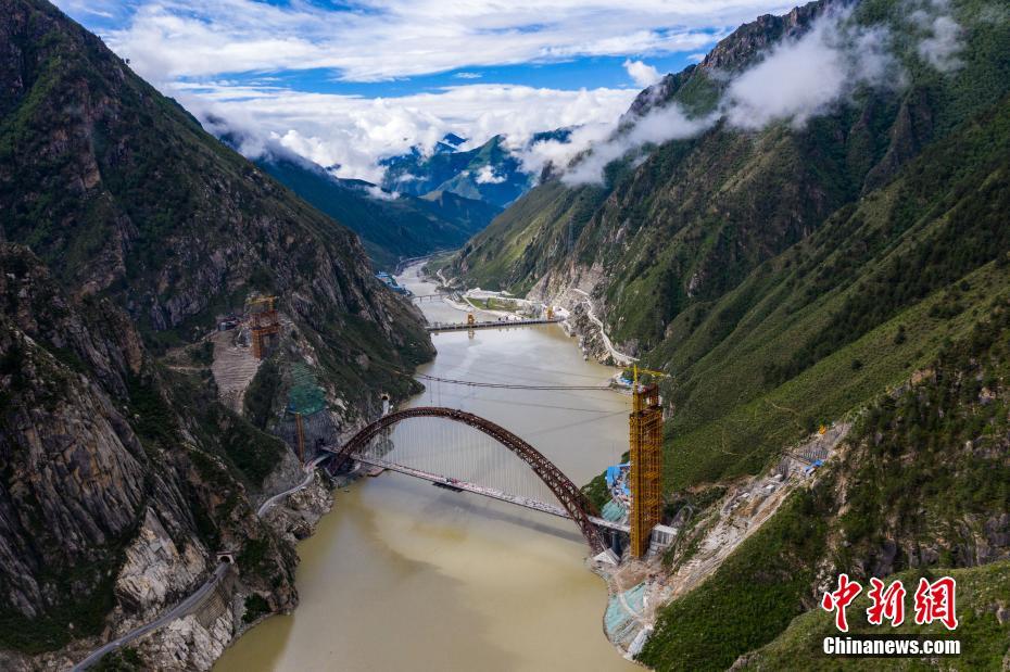 6月20日,位于西藏自治區(qū)加查縣的藏木特大橋成功合龍。中新社記者 何蓬磊 攝