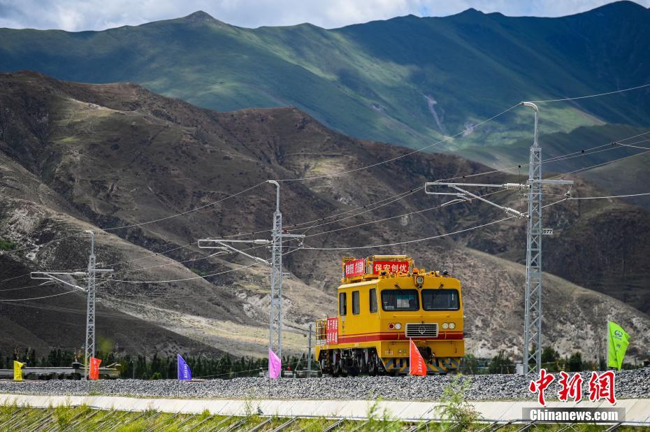 7月6日,川藏鐵路拉薩至林芝段(簡稱“拉林鐵路”)接觸網(wǎng)專業(yè)首件工程在西藏山南市扎囊至扎其區(qū)間成功建成,這為全線施工確定了規(guī)范和標(biāo)準(zhǔn),至此拉林鐵路也進(jìn)入了全線電氣化大規(guī)模施工階段。 拉林鐵路正線全長435.48公里,是西藏首條電氣化鐵路,正線共需架設(shè)接觸網(wǎng)540.63條公里,設(shè)計時速160公里。中新社記者 何蓬磊 攝