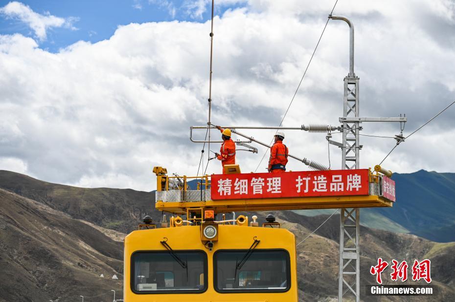 7月6日,中國中鐵電氣化局施工人員對拉林鐵路接觸網(wǎng)專業(yè)首件工程進(jìn)行復(fù)檢。當(dāng)日,川藏鐵路拉薩至林芝段(簡稱“拉林鐵路”)接觸網(wǎng)專業(yè)首件工程在西藏山南市扎囊至扎其區(qū)間成功建成,這為全線施工確定了規(guī)范和標(biāo)準(zhǔn),至此拉林鐵路也進(jìn)入了全線電氣化大規(guī)模施工階段。 拉林鐵路正線全長435.48公里,是西藏首條電氣化鐵路,正線共需架設(shè)接觸網(wǎng)540.63條公里,設(shè)計時速160公里。中新社記者 何蓬磊 攝