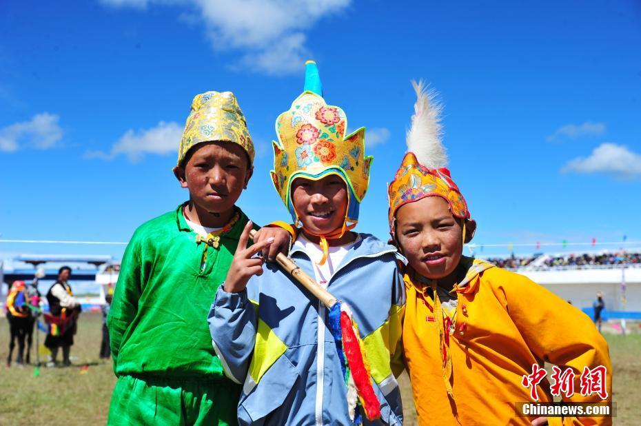 8月12日,2020年那曲羌塘恰青格薩爾賽馬藝術(shù)節(jié)在西藏那曲舉行,參賽選手均為9至14歲的少年騎手。圖為參加完比賽的少年騎手合影。中新社記者 張偉 攝