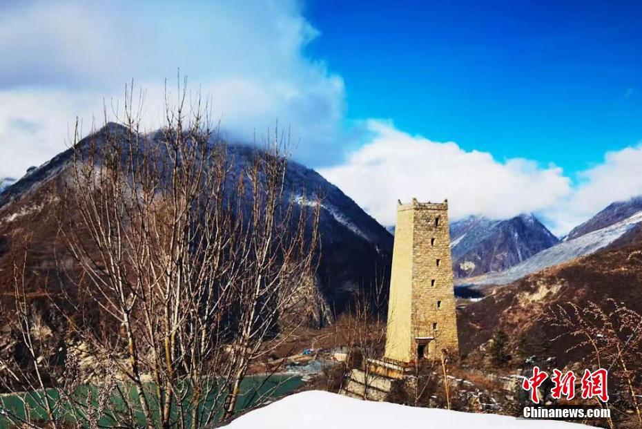 12月3日,一場(chǎng)雪,紛紛揚(yáng)揚(yáng),撒落在四川茂縣疊溪鎮(zhèn),降雪過后,天空放晴,陽(yáng)光照耀下,整個(gè)古鎮(zhèn)與瑞雪、云海、藍(lán)天相互映襯交融,構(gòu)成了一幅絕美的冰雪畫卷。疊溪鎮(zhèn)的烽火臺(tái)、水景觀、古鎮(zhèn)老街、下海子碉樓被雪花覆蓋,美得像一幅山水畫。陳貴瓊 攝