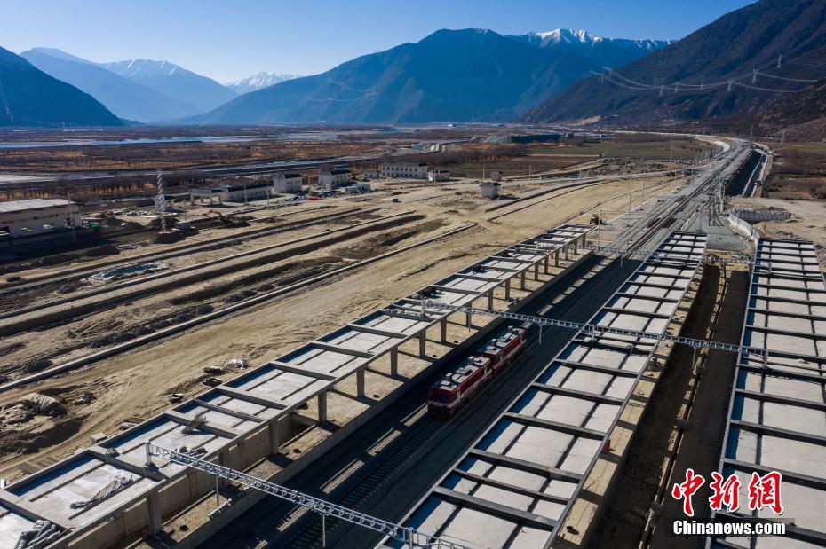 12月31日,中鐵十一局軌道車通過鋪設(shè)完成的拉林鐵路林芝站。當日,在西藏林芝市尼洋河畔的新建林芝火車站,川藏鐵路拉薩至林芝段(拉林鐵路)最后一段軌排順利鋪設(shè),這標志著拉林鐵路399.61公里的正線軌道全部鋪通,西藏東南地區(qū)結(jié)束無鐵路歷史。拉林鐵路起自西藏自治區(qū)首府拉薩,終點為林芝市,正線全長435.5公里,新建正線403.1公里,系西藏首條電氣化鐵路,設(shè)計行車速度為160km/h,全線計劃于2021年6月30日建成通車。(無人機照片)中新社記者 何蓬磊 攝
