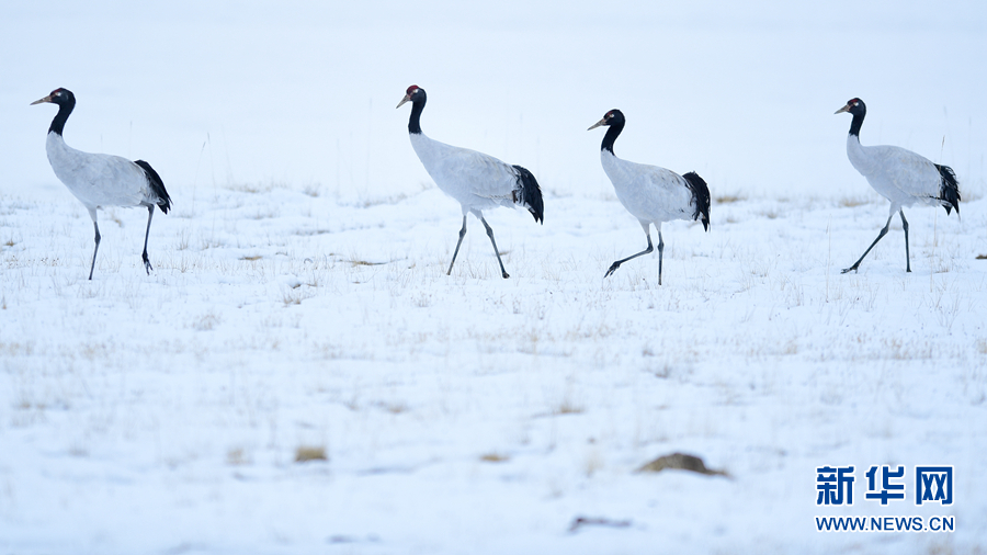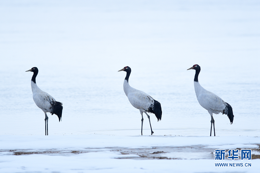 10月21日在三江源國(guó)家公園黃河源園區(qū)內(nèi)拍攝的黑頸鶴。新華社記者 張龍 攝