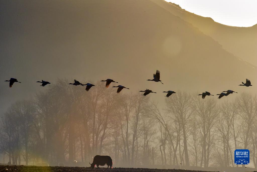 黑頸鶴先遣隊(duì)抵達(dá)拉薩林周 開啟越冬模式
