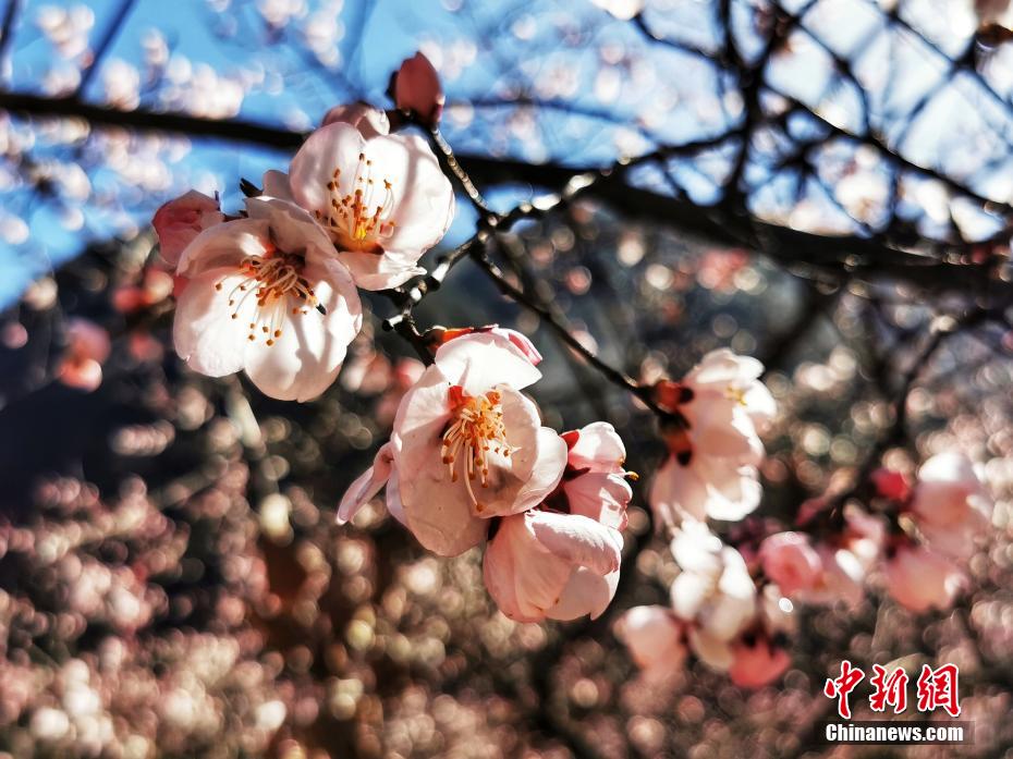 3月的九寨溝春回大地,暖陽怡人,遍布河谷、湖畔、山腰的九寨扁桃花迎風綻放,花期正當時。梁楓 攝