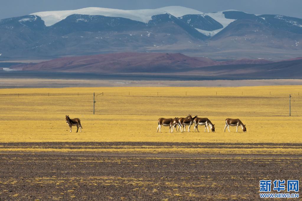雪山和藏羚羊群組成了特殊的高原風(fēng)景。索朗仁青 攝