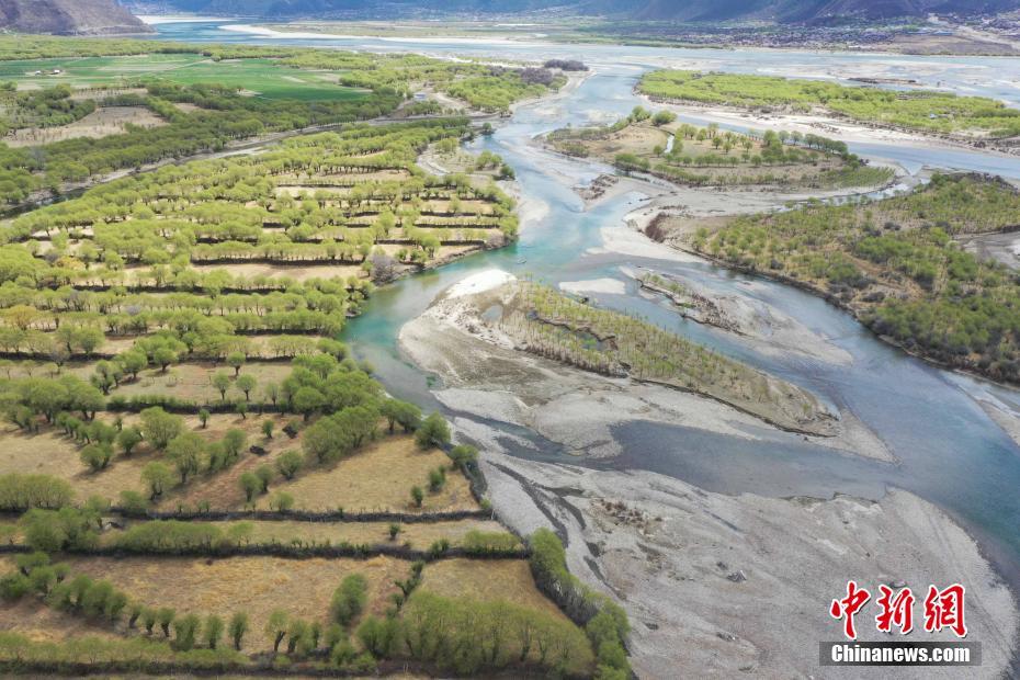 3月31日,西藏自治區(qū)林芝市雅尼國(guó)家濕地公園的春日風(fēng)光。雅尼國(guó)家濕地公園生態(tài)保護(hù)區(qū)位于林芝市巴宜區(qū)和米林縣境內(nèi)的雅魯藏布江與尼洋河交匯處。(無(wú)人機(jī)照片) 中新社記者 貢嘎來(lái)松 攝