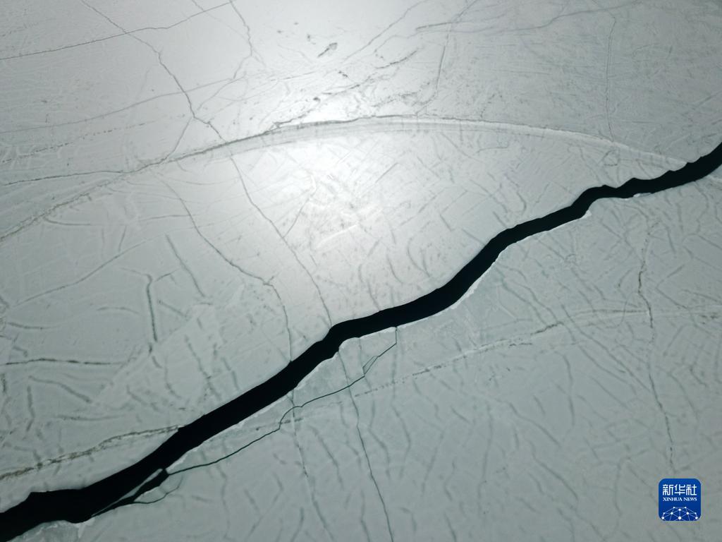 這是4月9日拍攝的班公湖冰面。由于湖體狹長,部分湖面仍未解凍。新華社記者 姜帆 攝