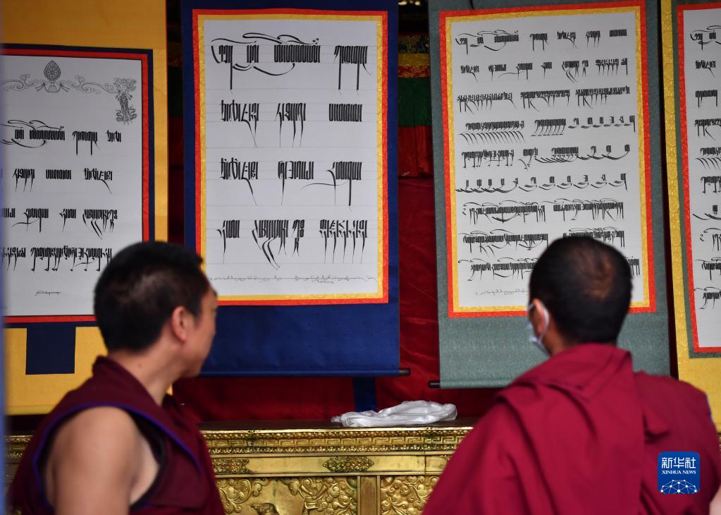 當天,西藏拉薩大昭寺舉行第三屆藏文書法展。50多名僧人創(chuàng)作的120多幅藏文書法作品,展示了不同字體書寫的藏文之美。