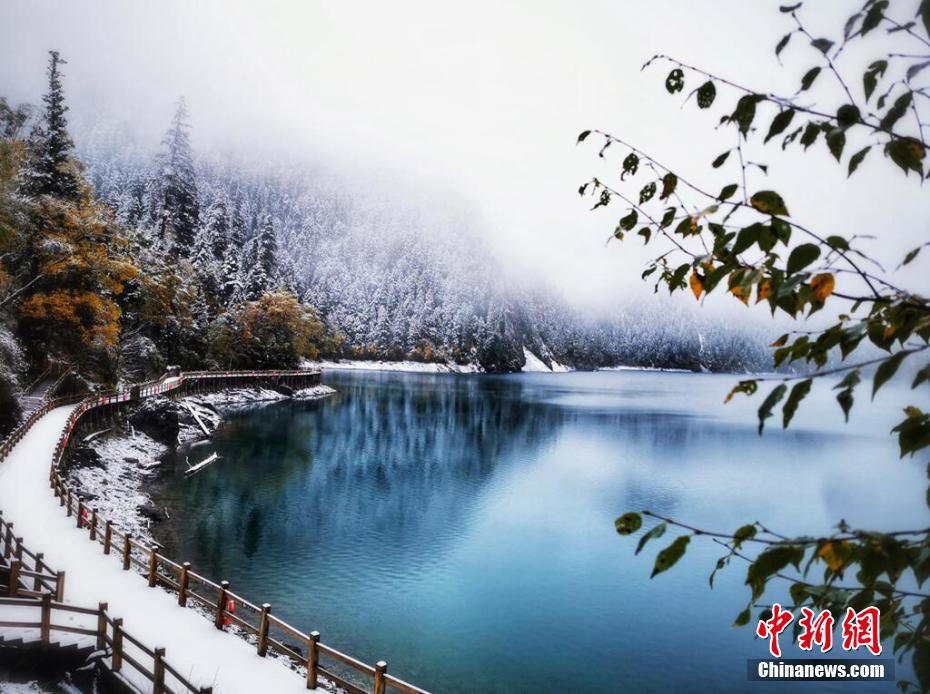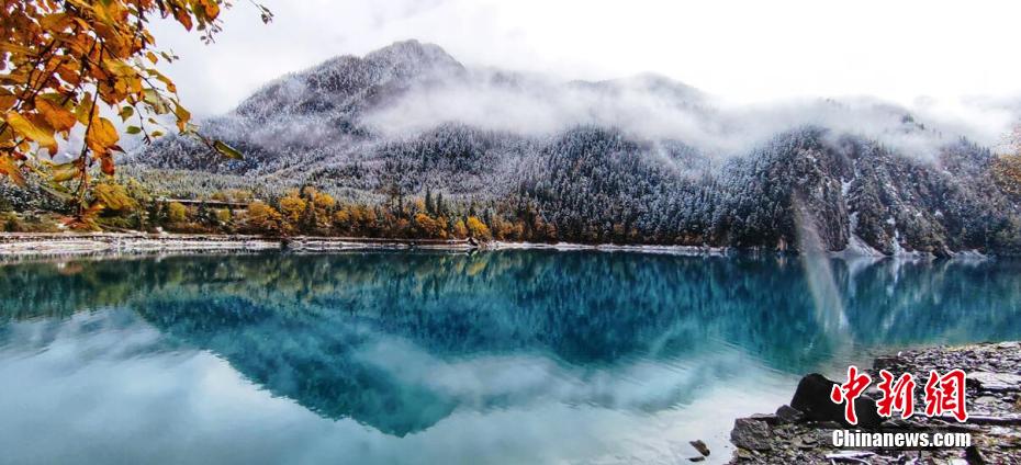十月,九寨溝長(zhǎng)海、原始森林等景點(diǎn)迎來(lái)入秋后的第一場(chǎng)雪。澄凈碧藍(lán)的海子和金色的彩林與潔白的雪花相映相襯,構(gòu)成一幅靜謐的美麗畫(huà)卷。遠(yuǎn)遠(yuǎn)看去,成片的彩林被一朵朵雪花點(diǎn)綴,美得像童話世界一般。 梁峰 攝