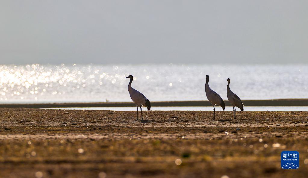 在林周縣虎頭山水庫(kù)拍攝的黑頸鶴(11月6日攝)。新華社記者 姜帆 攝