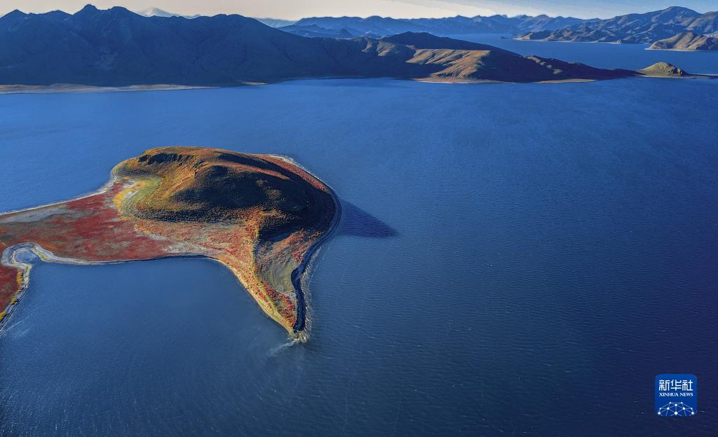 這是夕陽下的羊卓雍錯(cuò)(手機(jī)照片,1月1日攝)。新華社記者 沈虹冰 攝