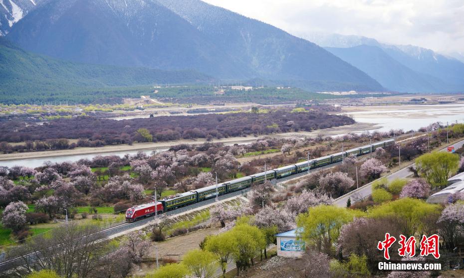 穿梭在桃花林中的拉林鐵路高原復興號。