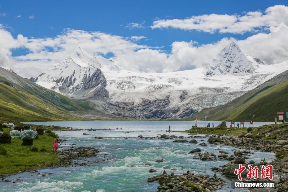 8月27日,記者在西藏那曲市比如縣拍攝到薩普雪山美景。薩普因雪豹而得名,位于比如縣羊秀鄉(xiāng)普宗溝內,全稱薩普貢拉嘎布。主峰色浦崗日海拔6996米,是喜馬拉雅山主峰北部的念青唐古拉山脈東段的最高峰。在薩普山腳有一個清澈如鏡的湖,全名堆烔薩錯查仁,又稱薩木措,是由雪山千年冰雪融化所形成,自山腳延伸,分為兩部分,靠近山腳下的為冰川湖泊,終年不化;另一部分為主湖,湖水碧綠,湖內魚兒成群。
