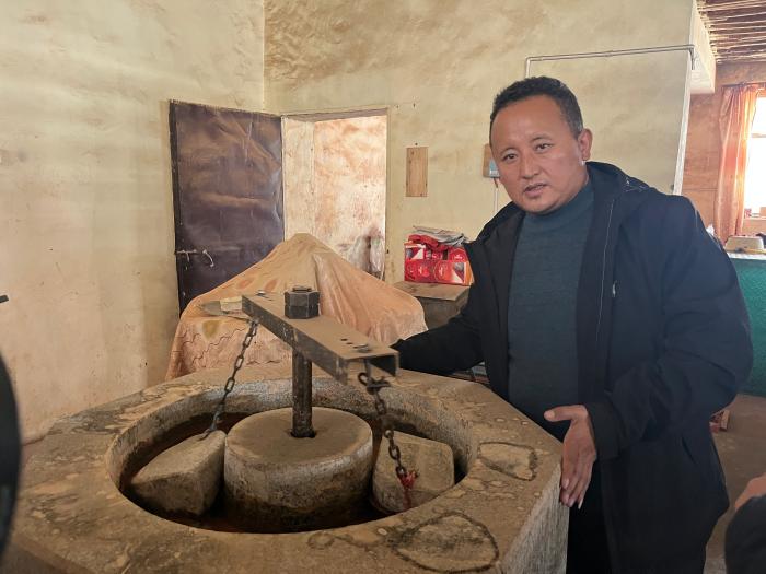 牛角鉆孔,將木泥擠出。人民網(wǎng)記者 次仁羅布攝