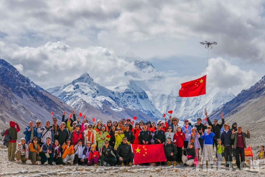國慶前夕,西藏日喀則邊境管理支隊珠峰邊境派出所民警在珠峰大本營和游客舉行了一場特殊的升旗儀式:一架無人機擎旗騰空,現(xiàn)場民警和群眾齊唱國歌,五星紅旗在雪域之巔迎風(fēng)飄揚。[詳細(xì)] -