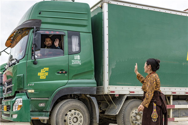 在兒子扎西澤翁眼里,阿爸不僅是同事,更是心中的英雄。每次出車前,妻子澤仁曲西都會為其美多吉送行。目送他離開后,還會為他祈福,祈求丈夫平安歸來。妻子為丈夫送行,這是雪線郵路上的家屬們長期形成的默契。圖片來源:中國郵電報