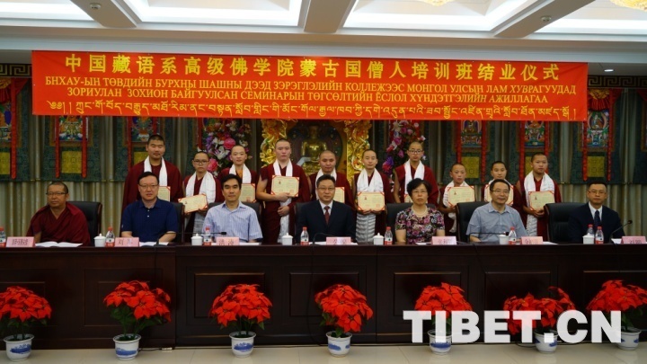 圖為結(jié)業(yè)式現(xiàn)場蒙古國學僧合影