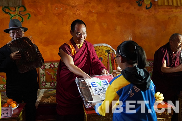 除了為白內(nèi)障患者免費實施復明手術(shù),此次公益活動還為扎什倫布寺僧人、白內(nèi)障患者和貧困學生贈送了價值1.5萬元的護眼太陽鏡和書包。