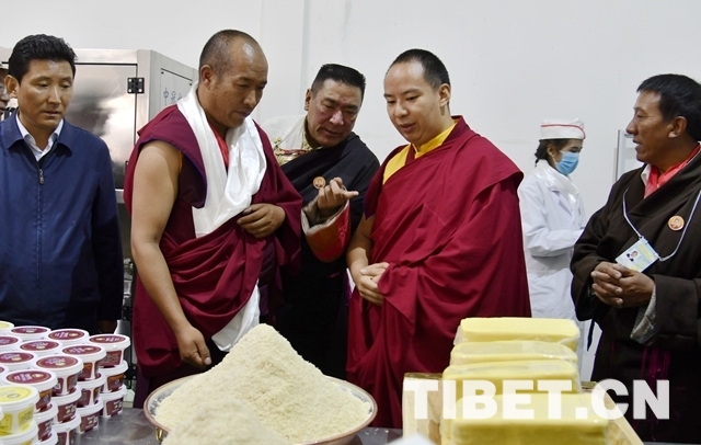 十一世班禪參觀乳制品加工廠房。攝影:王淑