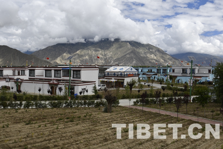 在四季吉祥村,十一世班禪考察了該村一站式服務(wù)中心、健身房、農(nóng)家書屋、村史館,并走訪慰問扶貧搬遷戶,了解他們的生產(chǎn)生活情況。圖為四季吉祥村。攝影:扎西