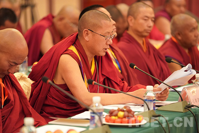 圖為山南市佛教協(xié)會會長達娃次仁發(fā)言。攝影:王淑