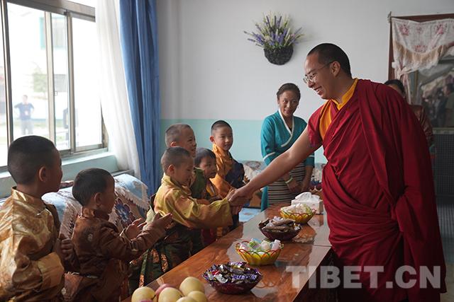 看望完殘障學(xué)生后,十一世班禪又來到山南市兒童福利院,看望在這里生活的山南市和那曲市部分孤兒。本著“一心想著孩子,一切為了孩子”的理念,福利院為460多名孩子提供了室內(nèi)外活動室、電教室、圖書室、美術(shù)室、成長教育園地、舞蹈室、藏文書法室等,孩子們可以在這里學(xué)習(xí)文化、增長見識。