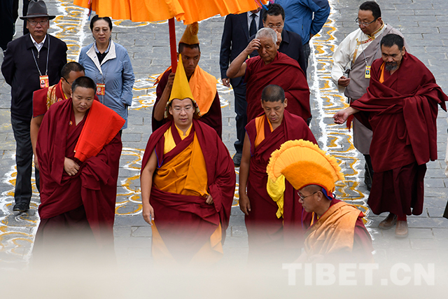 圖為寺廟僧人向十一世班禪敬獻(xiàn)曼扎。攝影:扎西