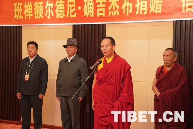 圖為十一世班禪在捐贈儀式上講話。攝影:王淑