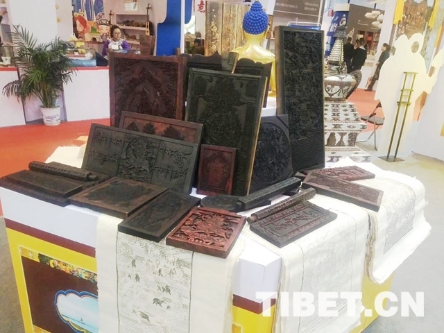 中國(guó)西藏網(wǎng)訊 10月25日至28日,第十三屆中國(guó)北京文化創(chuàng)意產(chǎn)業(yè)博覽會(huì)在京舉行。中國(guó)國(guó)際展覽館8011號(hào)館,紅瓦白墻的建筑風(fēng)格和異域元素的搭配吸引著眾人的目光。遠(yuǎn)遠(yuǎn)望去,門口立著一尊金身佛像,遠(yuǎn)處的墻上掛著唐卡,櫥窗里擺放著造型奇特的面具——西藏!走近點(diǎn),首先映入眼簾的是五顏六色的紙和染了墨水的木板雕刻字畫,再往里走,有木碗、石鍋、藏毯、藏香,還有布達(dá)拉宮造型的筆筒……各類文創(chuàng)產(chǎn)品讓人目不暇接。