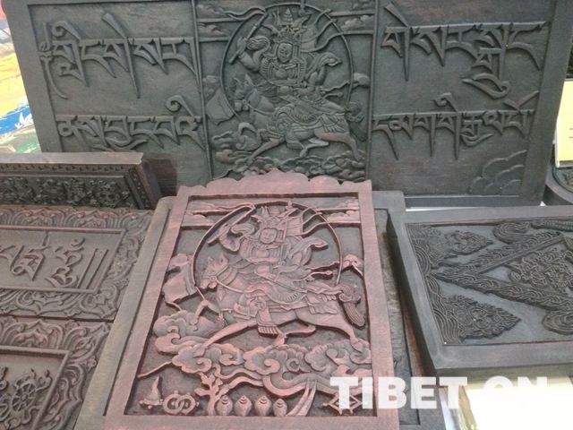 圖為木板雕刻格薩爾王。