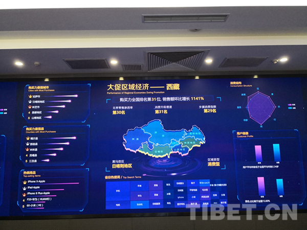 中國西藏網(wǎng)訊 1.96億元,這是西藏消費(fèi)者在阿里巴巴中國零售平臺(tái)交出的“成績單”。只用了19小時(shí)05分鐘42秒,就超越了去年“雙11”的全天成交額。購買力全國排名第31位,銷售額環(huán)比增長1141%,這是11月11日13時(shí)42分京東電商平臺(tái)統(tǒng)計(jì)的大促區(qū)域經(jīng)濟(jì)西藏?cái)?shù)據(jù)。