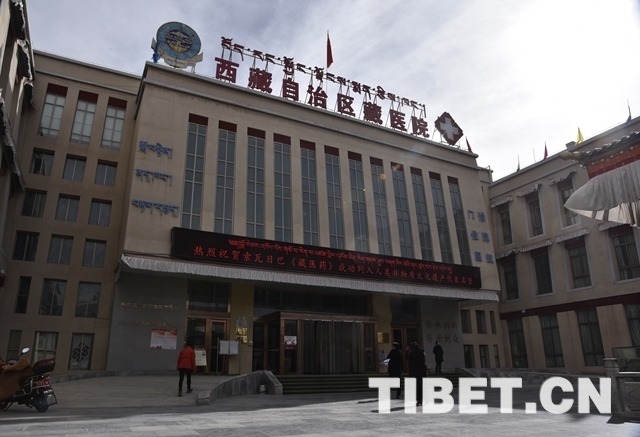 圖為11月29日,西藏自治區(qū)藏醫(yī)院門(mén)診樓祝賀“申遺”成功的字幕。