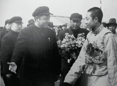 1951年4月中旬,習(xí)仲勛與十世班禪第一次會(huì)面。那時(shí),十世班禪率領(lǐng)班禪堪布會(huì)議廳官員赴京途經(jīng)西安,習(xí)仲勛作為西北局和西北軍政委員會(huì)主要負(fù)責(zé)人,到機(jī)場(chǎng)迎接。班禪走下飛機(jī)時(shí),一個(gè)眉清目秀、和善聰慧、舉止文雅、彬彬有禮的英俊藏族少年活佛形象,出現(xiàn)在習(xí)仲勛的眼前。在飛機(jī)舷梯下,十世班禪緊緊握住習(xí)仲勛的手,心情激動(dòng)地說:“我們是專程去北京向毛主席致敬的!我要把藏族人民對(duì)中央人民政府和毛主席的良好祝愿親口轉(zhuǎn)達(dá)給毛主席。”在當(dāng)晚歡迎會(huì)上,十世班禪表示堅(jiān)決擁護(hù)中央人民政府,決心與西藏各界愛國(guó)人士一道為西藏的解放和藏族人民的團(tuán)結(jié)努力奮斗?!坝兄静辉谀旮摺保腊喽U的愛國(guó)熱情和坦誠(chéng)豪爽的性格給習(xí)仲勛留下了深刻的印象。當(dāng)天,習(xí)仲勛把他接到西北局大院自己家中,十世班禪與習(xí)仲勛的大兒子習(xí)富平同齡,兩人很快就熟稔起來。