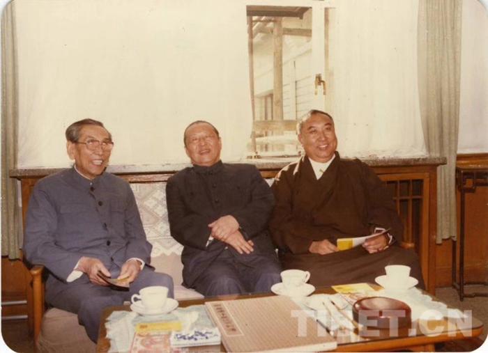 圖為1987年初,十世班禪大師與習(xí)仲勛、阿沛?阿旺晉美商議援助西藏發(fā)展基金會(huì)籌備事宜。