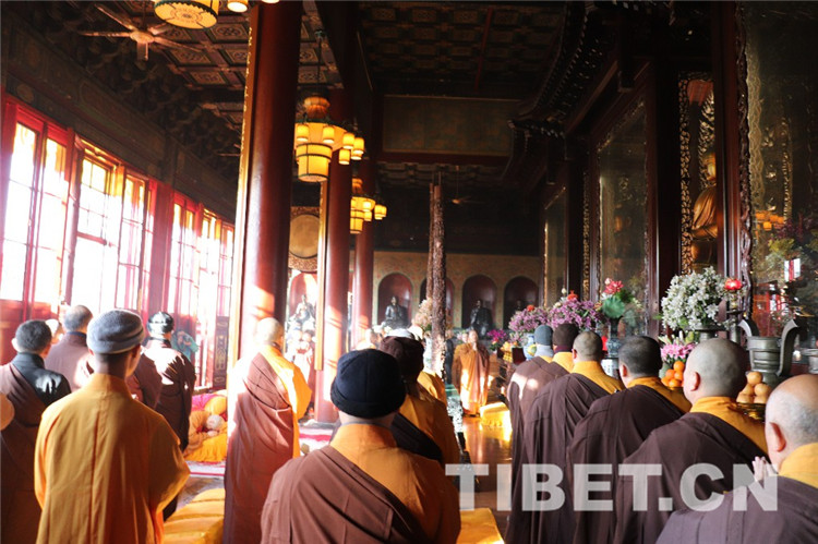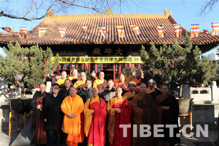 中國西藏網(wǎng)訊 今年適逢中國佛教協(xié)會名譽會長十世班禪大師圓寂30周年,1月28日上午9時,中國佛教協(xié)會及在京直屬寺院法師、工作人員、首都善信居士齊聚北京廣濟寺,隆重舉行紀念十世班禪大師圓寂30周年法會,深切緬懷十世班禪大師。法會禮請中國佛教協(xié)會演覺副會長、宗性副會長、祜巴等傣副會長主法,宏度副秘書長主持紀念儀式。三位法師拈香主法,帶領(lǐng)僧眾莊重誦經(jīng),圓滿完成法會儀軌。