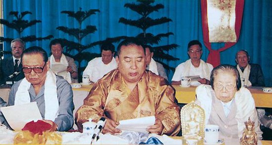 圖為習(xí)仲勛(左一)、十世班禪(中)、鄧穎超(右一)、參加中國(guó)藏語(yǔ)系高級(jí)佛學(xué)院成立大會(huì)。圖片來(lái)源:人民日?qǐng)?bào)