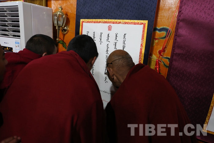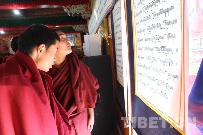 此次活動共征集書法作品80余幅,包含藏文、梵文、漢文、英文,其中藏文書法當中又有烏金和烏梅體、草書體和古藏文體等多種書法類型,不僅展現(xiàn)了藏文書法精美多樣的字體和悠久歷史,而且表達了全寺僧眾深切緬懷大師的至真感情和銘記大師教誨,積極發(fā)揚藏傳佛教愛國愛教優(yōu)良傳統(tǒng)的堅定信心。(中國西藏網(wǎng) 記者/索朗加措、趙耀 圖片由扎什倫布寺寺管會提供)