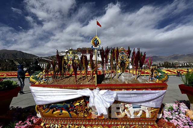圖為布達拉宮廣場上擺放的切瑪盒。
