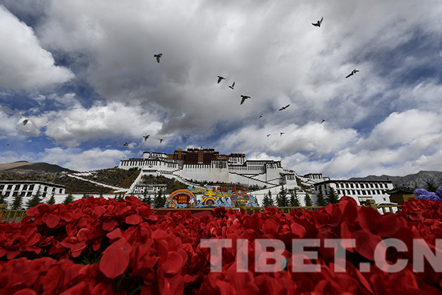 圖為布達拉宮廣場裝飾一新迎新年。