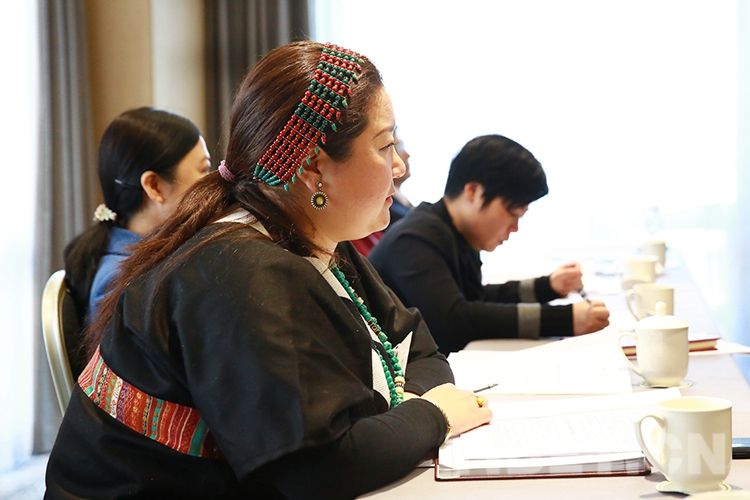 圖為貢覺曲珍參加全國政協(xié)十三屆二次會議民族界別小組討論會。攝影:陳衛(wèi)國
