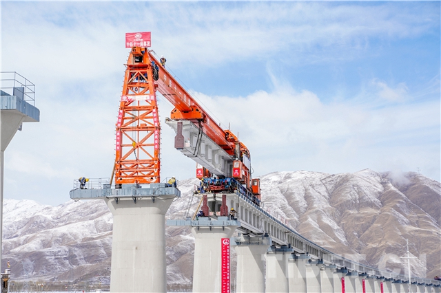 杰德秀Ⅰ號特大橋位于西藏山南市貢嘎縣杰德秀古鎮(zhèn)旁,是拉林鐵路首座聲屏障特大橋,該橋設(shè)計(jì)全長1255米,共需架設(shè)38孔T梁,其中聲屏障梁18孔。